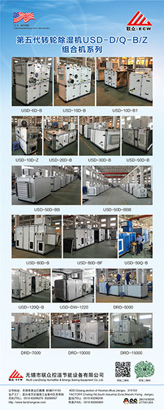無錫市聯(lián)眾控濕節(jié)能設備有限公司成立于2004年2月,是一家長期致力于把空氣吸附分離技術應用于空氣處理設備的科技型中外合作 企業(yè),主要研發(fā)生產轉輪除濕機組、熱泵除濕機組、空氣與空氣熱 能交換回收機組、蒸發(fā)冷卻空調機組、有機廢氣凈化處理機組等非 標空氣處理設備。隨著生產規(guī)模的不斷壯大和產業(yè)化的精細分工, 聯(lián)眾公司與2011年10月在江蘇省宜興市萬石鎮(zhèn)工業(yè)園茶亭路8號, 一期投資5000萬元,置地25畝、建標準工業(yè)廠房10000平方米和辦 公樓3000平方米,重新注冊成立江蘇聯(lián)眾聯(lián)勝節(jié)能設備有限公司。 企業(yè)領導層決定確立江蘇聯(lián)眾聯(lián)勝公司以研發(fā)生產蒸發(fā)冷卻空調機 組、有機廢氣凈化處理機組等大型節(jié)能環(huán)保空氣處理設備為主;而無錫聯(lián)眾控濕公司則在無錫繼續(xù)以研發(fā)生產轉輪除濕機組、熱泵除濕機組、空氣與空氣熱交器為主。在國內暖通空調工程領域,聯(lián)眾控濕公司研發(fā)各類轉輪除濕機的技術能力、生產各類轉輪除濕機的 裝備制造工藝水平處于本行業(yè)前沿。