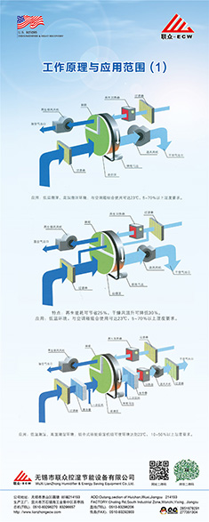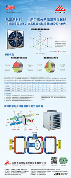 轉輪除濕機應用技術有如下幾個難點問題:除濕干燥轉輪的選 擇、與冷卻除濕法的比較及聯(lián)合、除濕機組的自動化控制、大風量 除濕機組的節(jié)能方向、再生電加熱功率不小于50KW時的運行可靠性 、送風與回風的比例控制等。據(jù)以上技術特點,轉輪除濕機應用時 一定要因地制宜、量體裁衣,根據(jù)用戶要求及用戶的現(xiàn)有條件進行 設計選配。另外,除濕轉輪的除濕能力有一定衰減性,除濕轉輪選 配時要留有余量。